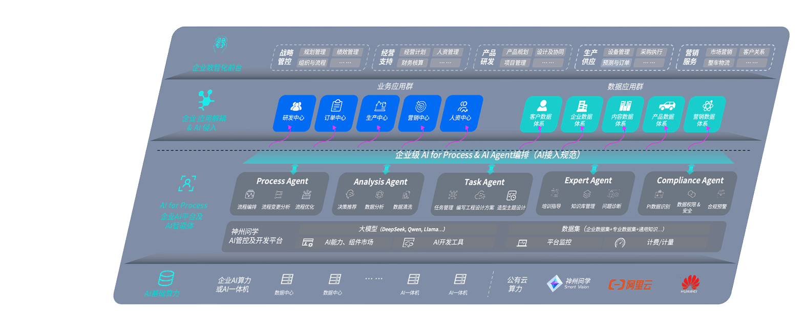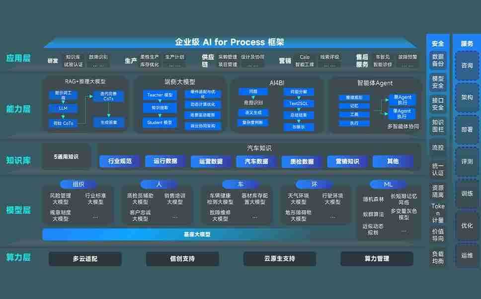 端到端的一站式AI工作空间深度融合了从企业战略规划到日常经营的全流程业务板块,,,定向解决车企内部领域多、、部门多、、链条长、、场景碎片化等难题,,支持车企快速构建以AI为核心的生产力写作体系,,实现任务执行与AI能力的无缝集成与交互
